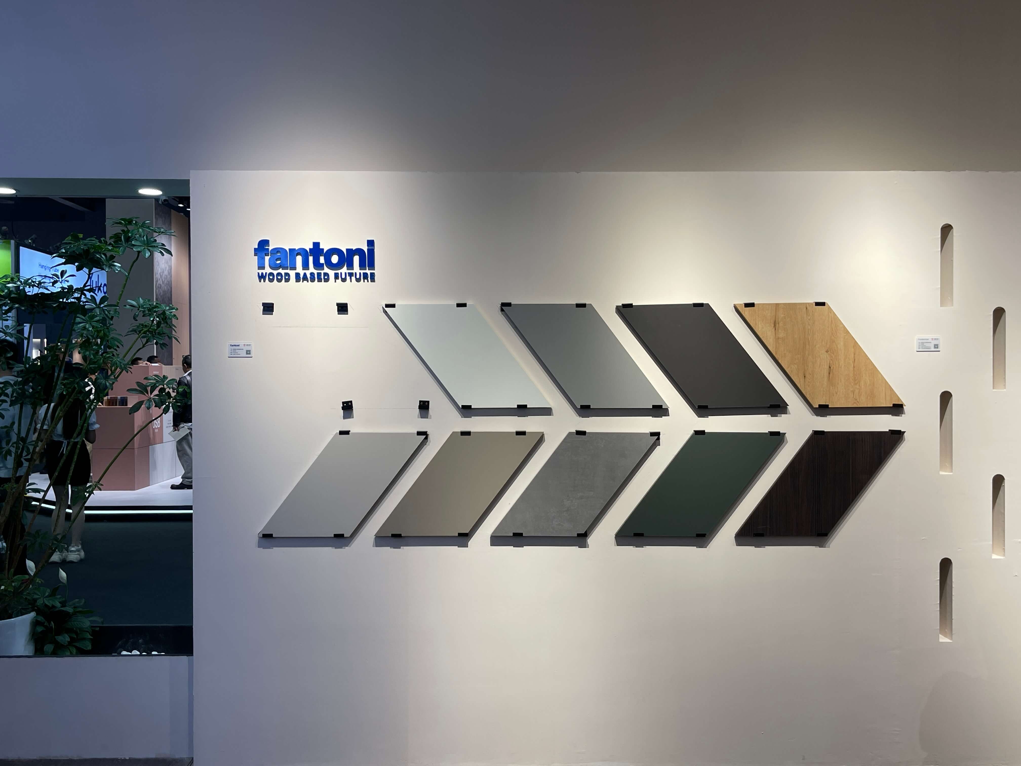 展位空间划分为四个区域:涵盖欧松®Fundermax、欧松®Fantoni、欧松®Berneck和Karrisen凯立森®饰面板的成品家居与花色展示。无论是工艺精湛的圆弧曲面墙体还是门墙柜一体化落地方案,在凸显产品功能性的同时,饰面花色与风格设计既充满潮流与先锋质感,又不失稳重与大气,让人眼前一亮。