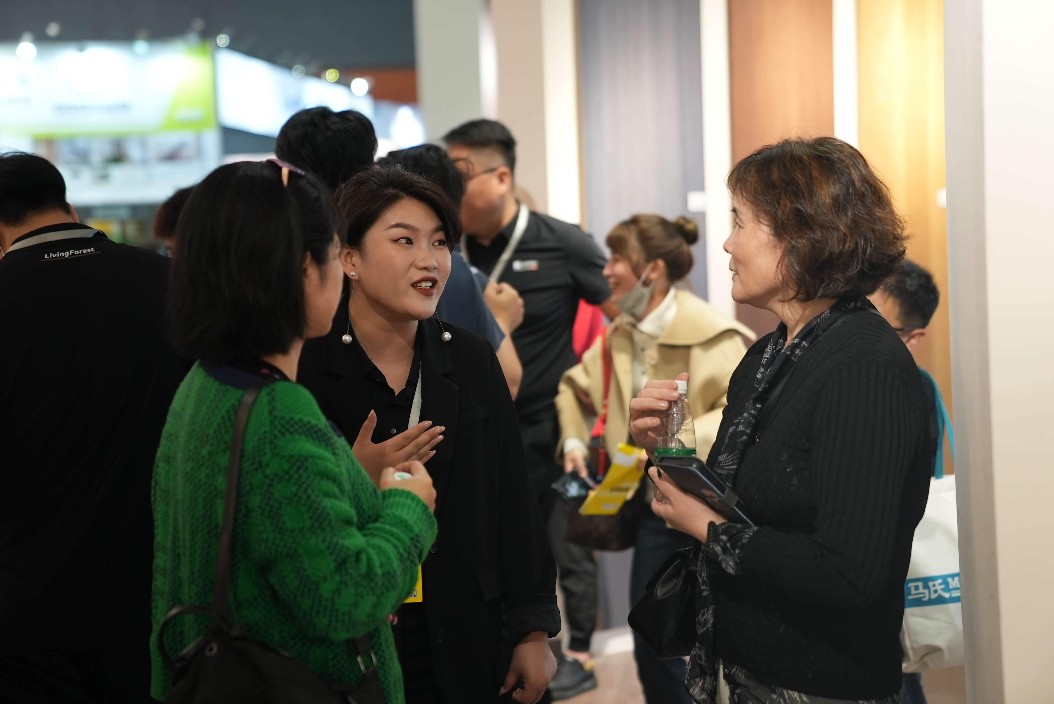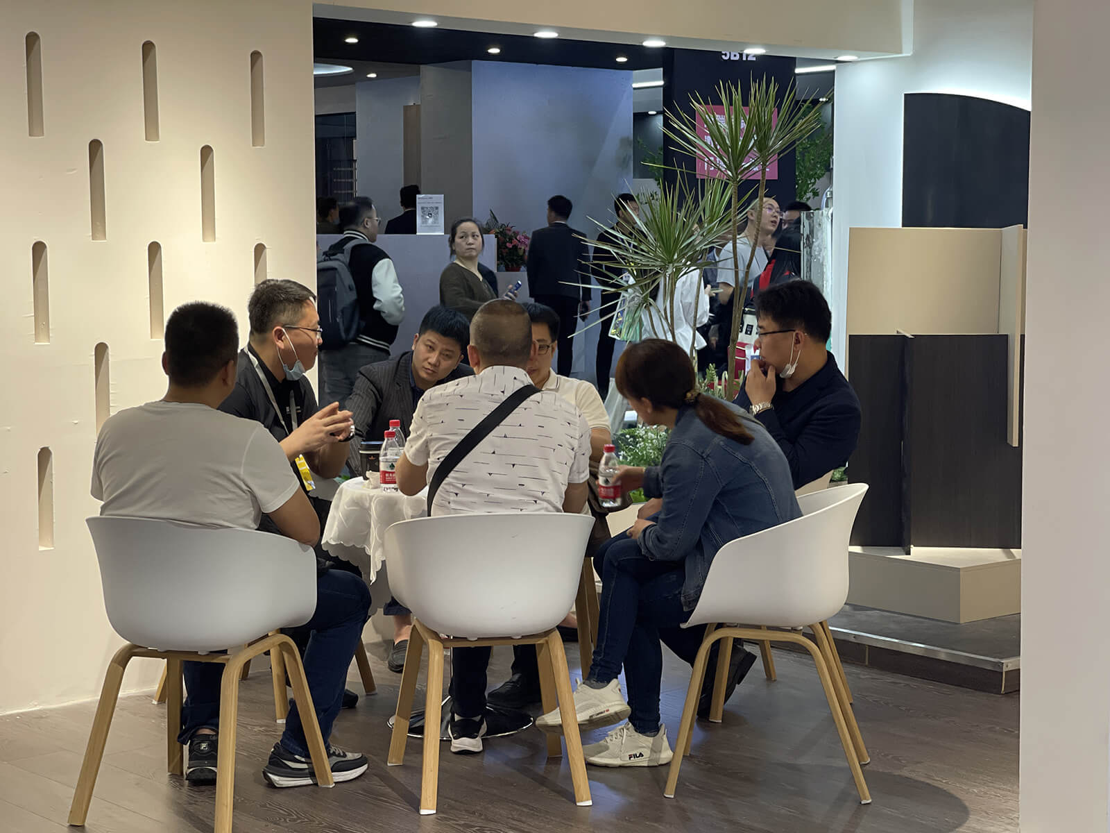 展位上参展观众比肩接踵,人气火爆,现场洽谈热火朝天。每一位北新木业的团队成员都在进行着积极的介绍与讲解,用20余年人造板材从业者的专业与经验为观众提供周到、热情的服务,在悉心听取诉求的同时,也将高品质产品体系与北新木业的品牌理念介绍给每一位参展观众。