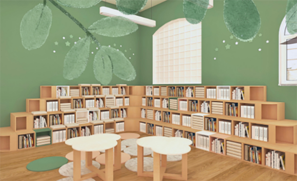 再加入走心的个性化设计:可坐可躺的独立阅读空间、可爱的云朵小桌和软垫,满足上课、存书、借阅等基本功能的同时,更满足了孩子们的探索心和好奇心。